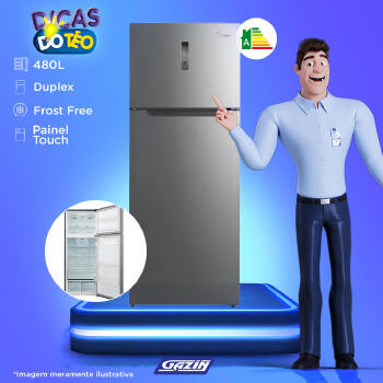 O novo refrigerador Top Freezer Midea possui uma plataforma moderna, que garante mais capacidade interna, além de ser super econômico. Com gavetas com controle de umidade, ideal para frutas, verduras e legumes, seus alimentos permanecem sempre frescos. O Top freezer Midea possui desodorizador, painel touch, compartimento extra frio e trava de segurança para crianças.