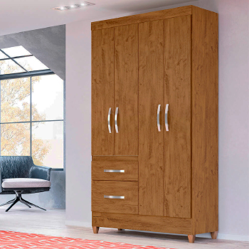 O Guarda-roupa Madri é uma ótima opção para quem precisa organizar as roupas em um ambiente compacto. Feito em MDP, possui 4 portas, 2 gavetas externas, 3 prateleiras, um cabideiro e um nicho para sapatos. Ainda conta com dobradiças e corrediças metálicas e puxadores cromados.