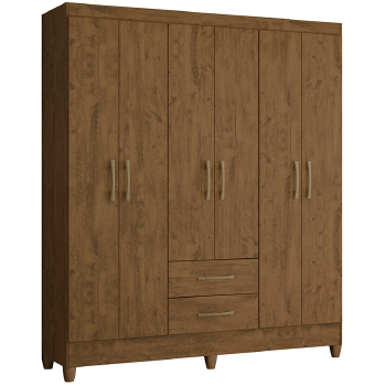 O guarda-roupa Panamá é feito em MDP, possui 6 portas e 2 gavetas com corrediças metálicas. Tem cabideiro e um amplo espaço interno com espaço bem dividido entre as prateleiras.