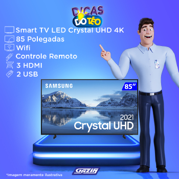 Samsung Smart TV 85" Crystal UHD 4K 85AU8000, Painel Dynamic Crystal Color, Design slim, Tela sem limites, Visual Livre de Cabos, Alexa built in, Controle Único